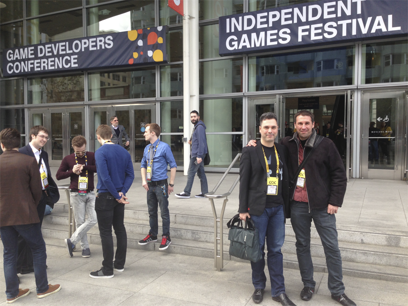 And today was my first day at GDC. I attended the Education Summit and the Narrative Summit. What I can say up until now is that the conferences are great, they have big audiences, and they are quick and productive. And they are a good opportunity to meet interesting people or reunite with old friends. Here I am with Alex, now senior game designer at Square Enix, who collaborated with us a few years ago as a teacher in our game master academic program.